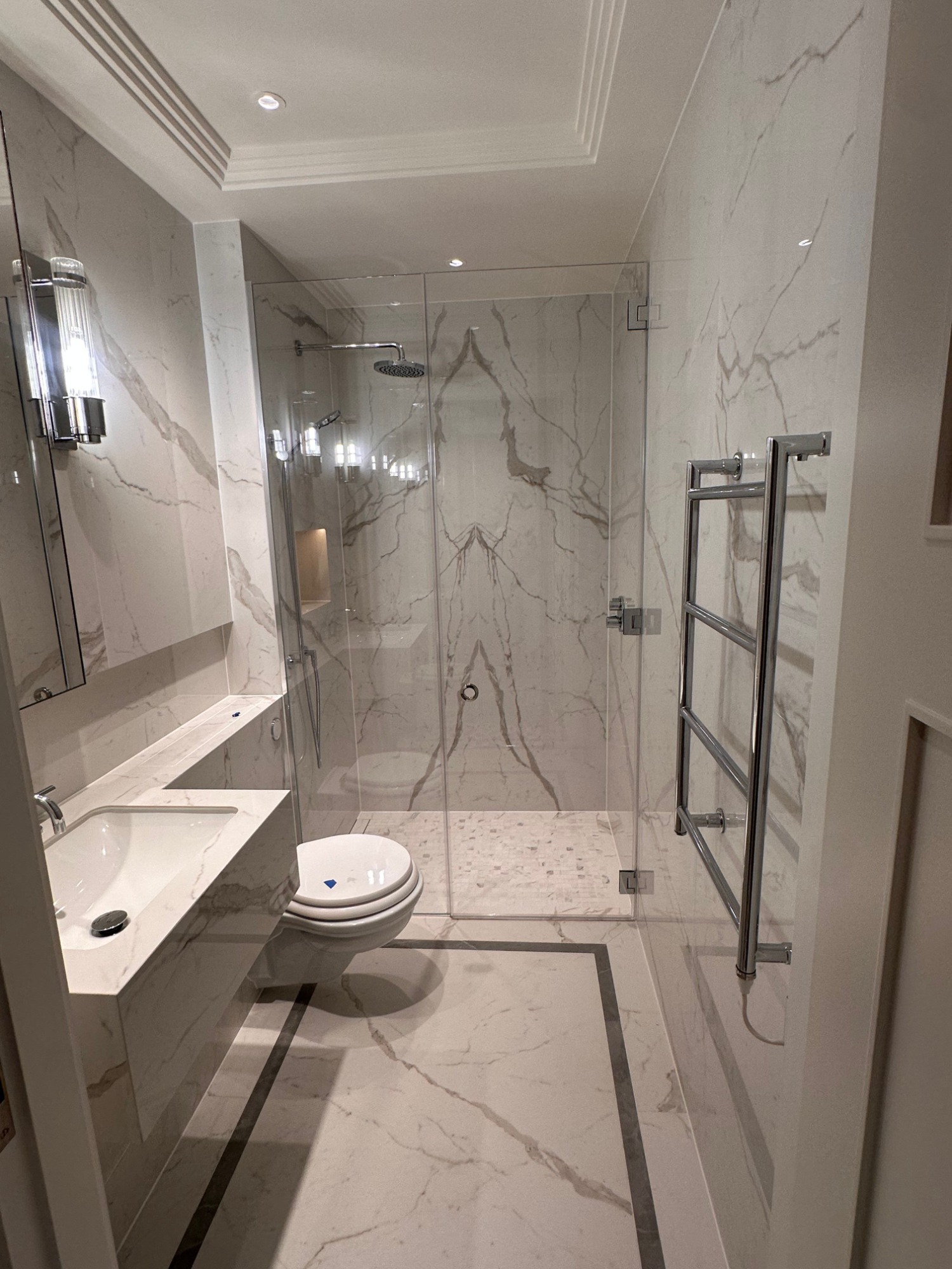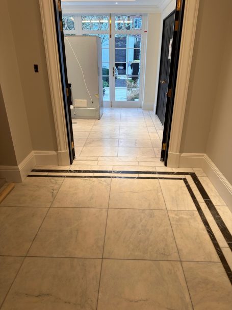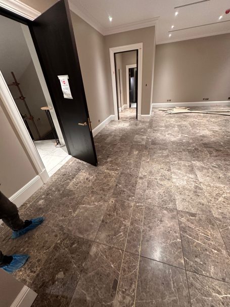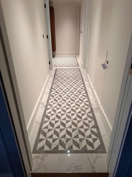 TruEdge Stone & Ceramics delivered exclusive natural stone and tiling works within this premium private residence overlooking Hyde Park. The project included extensive bathroom installations, feature stonework, and detailed corridor finishes, completed to a luxury residential standard with strong emphasis on material quality, precision detailing, and bespoke solutions.
