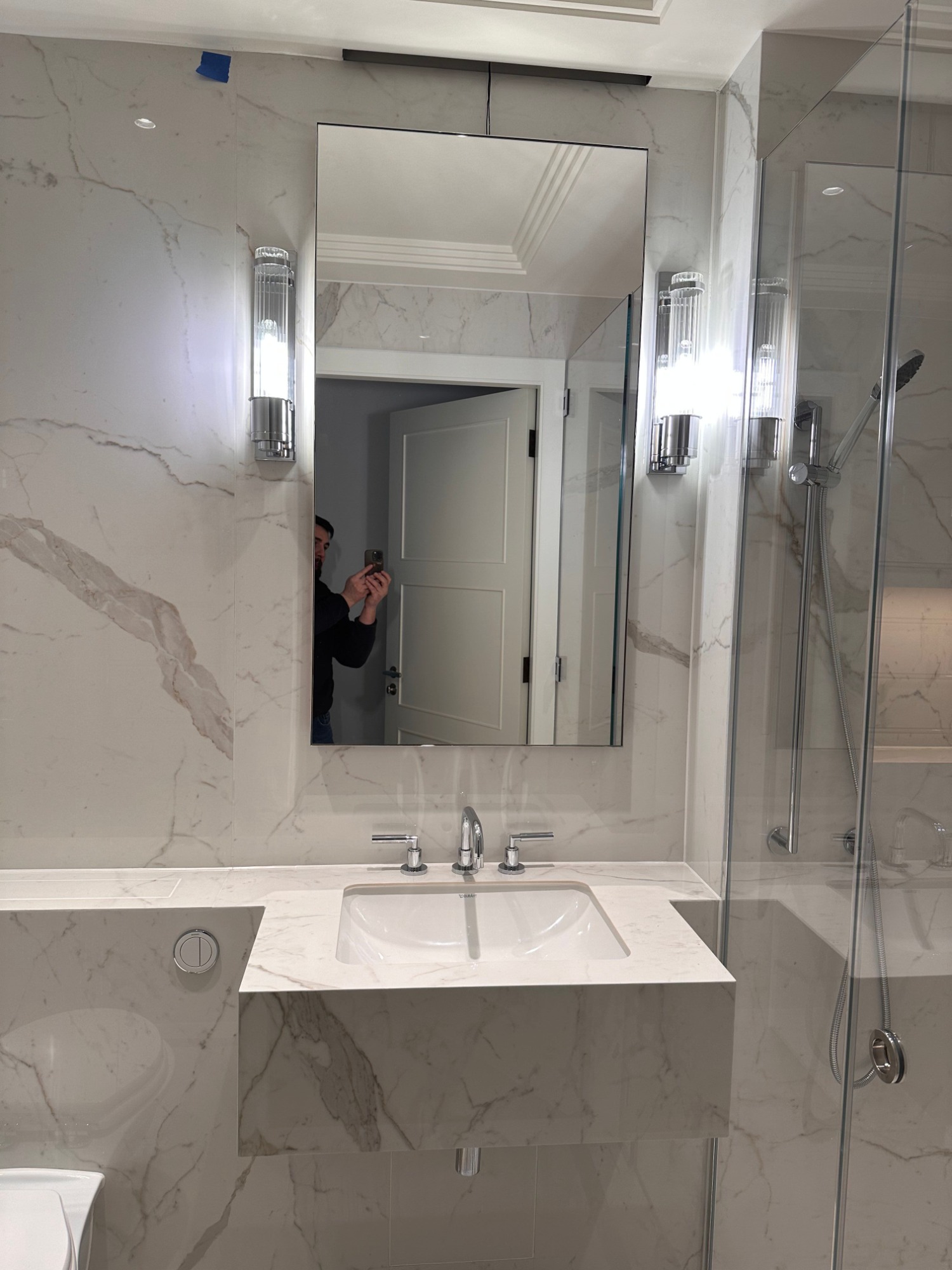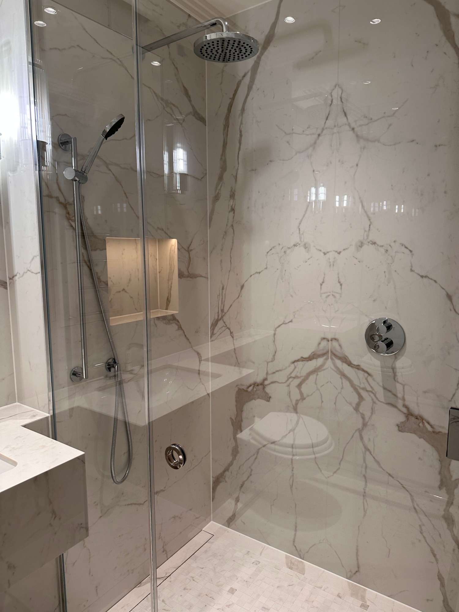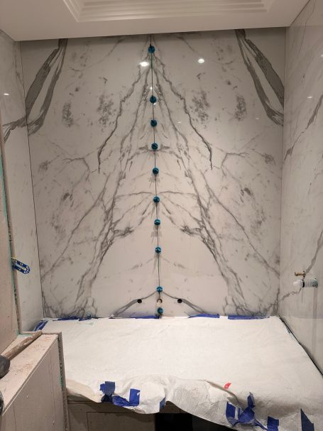 - Book-matched porcelain installations