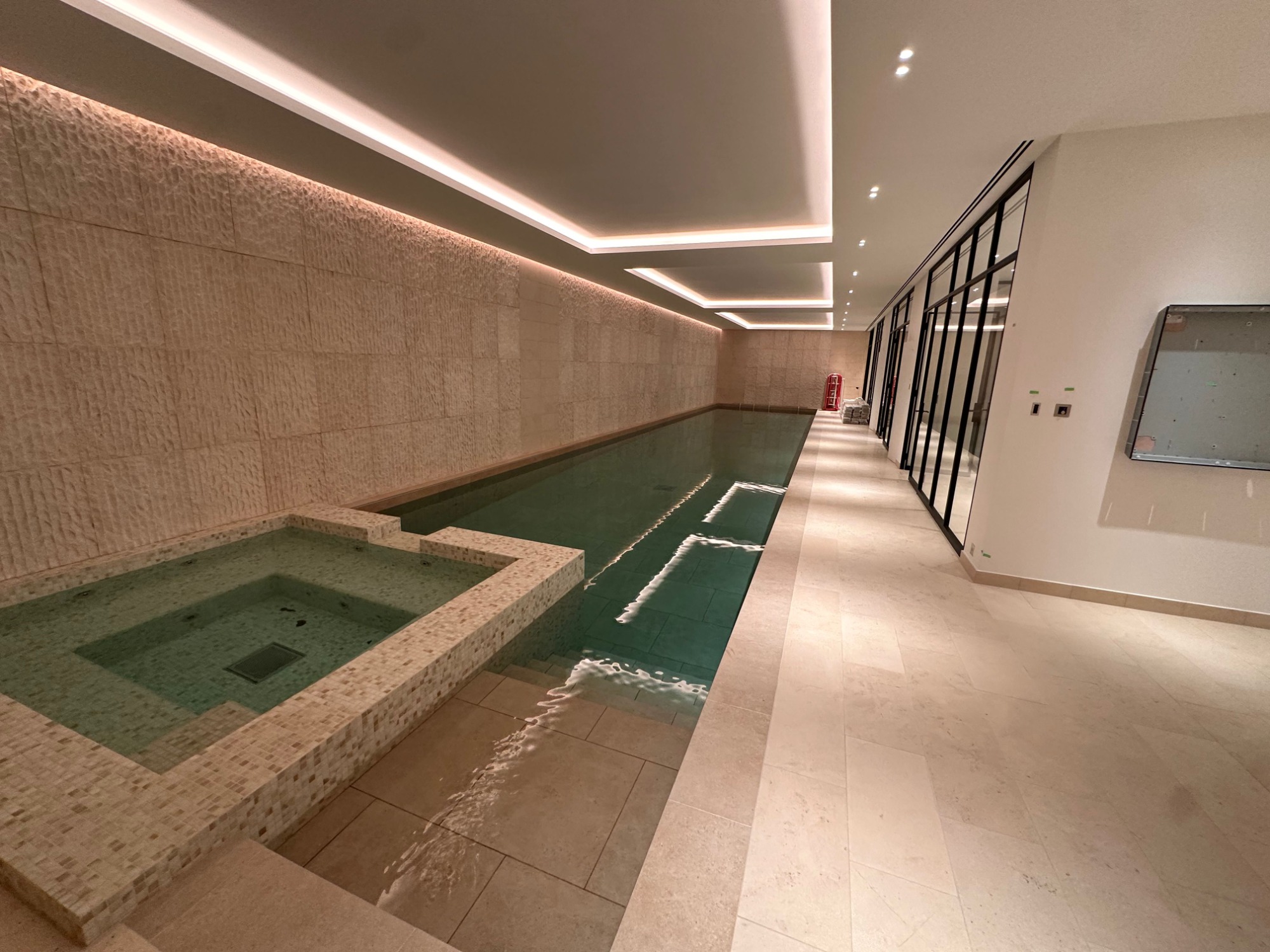 - Installation of approximately 800 m² of natural stone tiling
