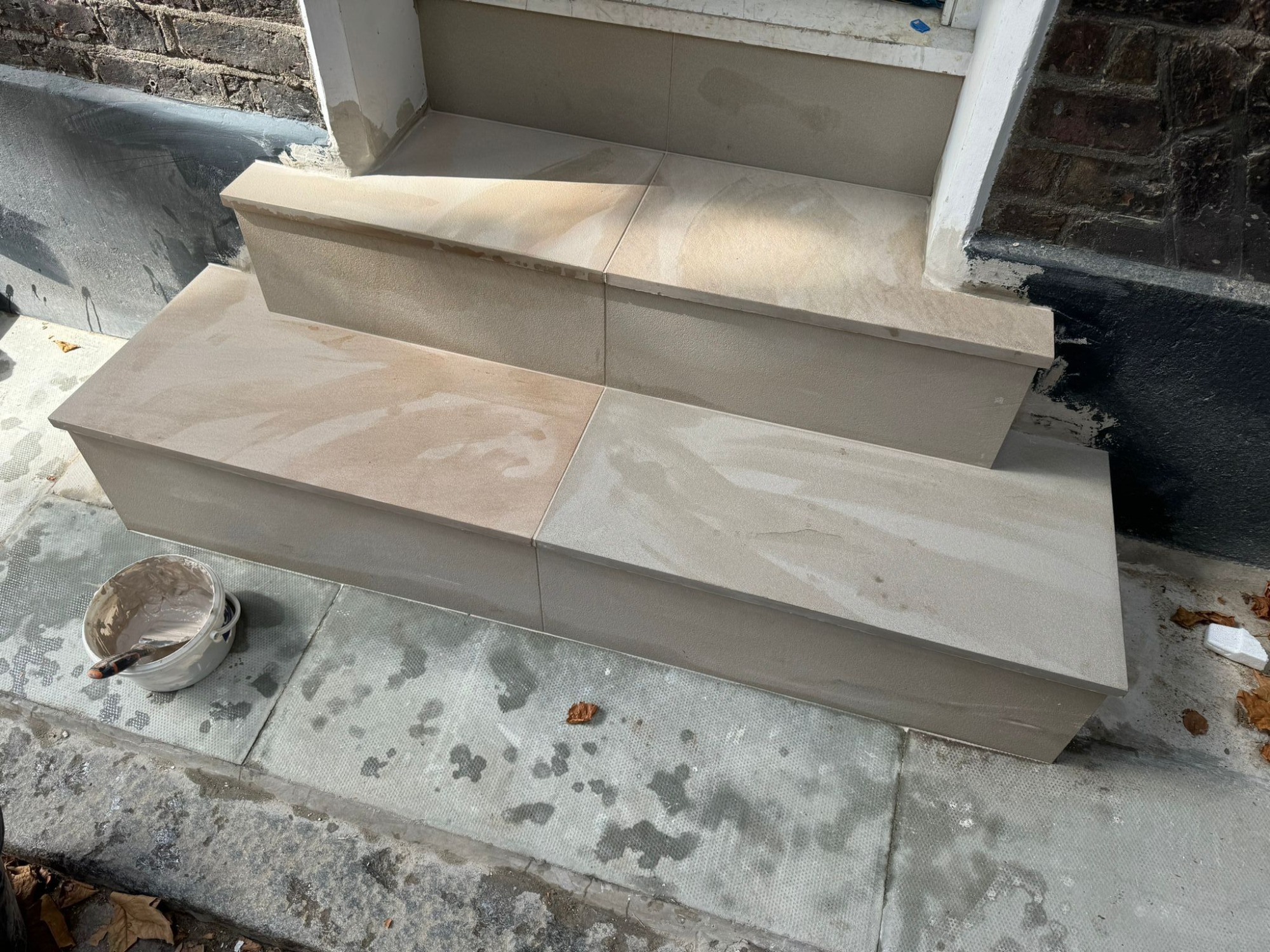 - External stone and tiled staircase detailing